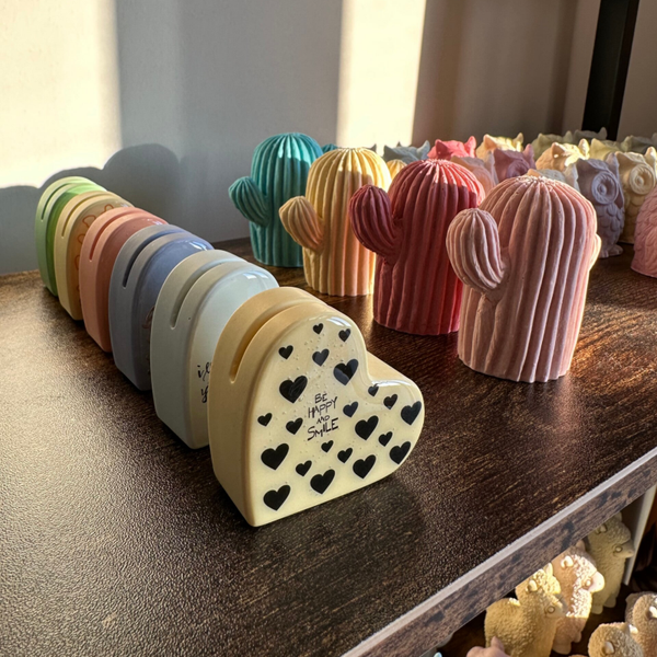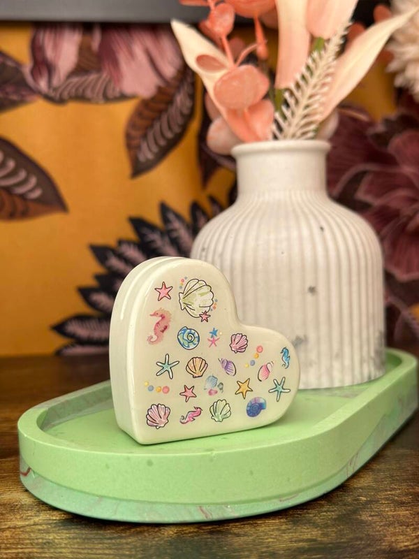 Cuori coloratissimi e originali per le tue fotografie o per mettere in evidenza i tuoi biglietti da visita. Molto belli anche come segna posto per i tuoi eventi più importanti (matrimonio, battesimo, cresima, feste). Fatti a mano in eco resina (Jesmonite).